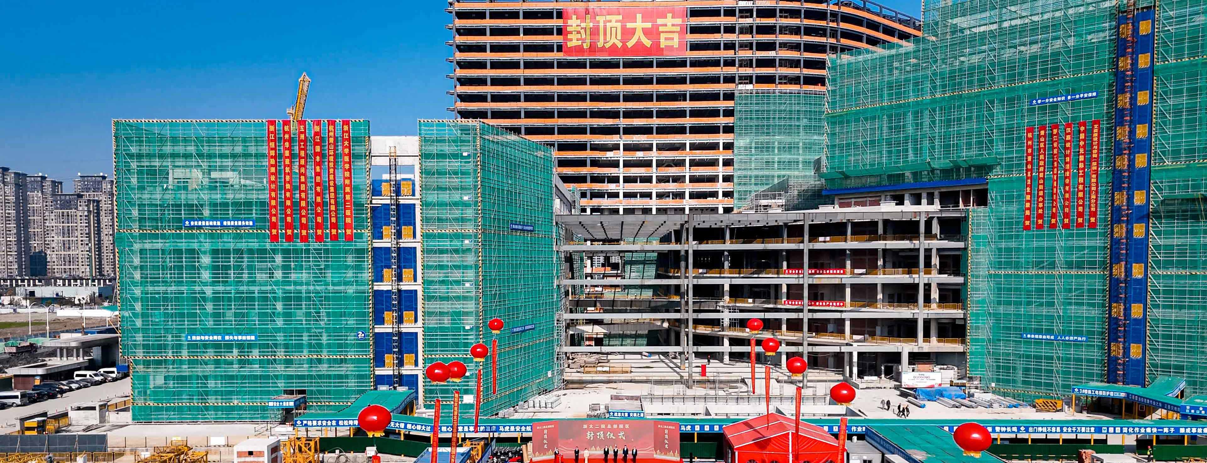 我集團承建的浙大二院總部院區(qū)項目喜結(jié)金頂